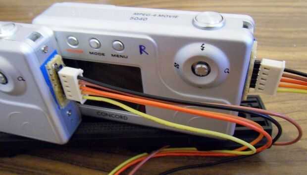 Probar con diferentes distancias entre las dos lentes. Ideal es casi 7,5 cm, estrechamente lo que ajusta la distancia del ojo humano. Si la haces más grande, todo parece en Lilliput, cuando haces más pequeño, todo parece ser más grande de lo que realmente es. El pequeño cambio de la primera a la segunda cámara normalmente no molestar la vista. Para manejar esto podría montar la segunda cabeza de la cámara al lado de la primera. Pero eso es todo un esfuerzo.