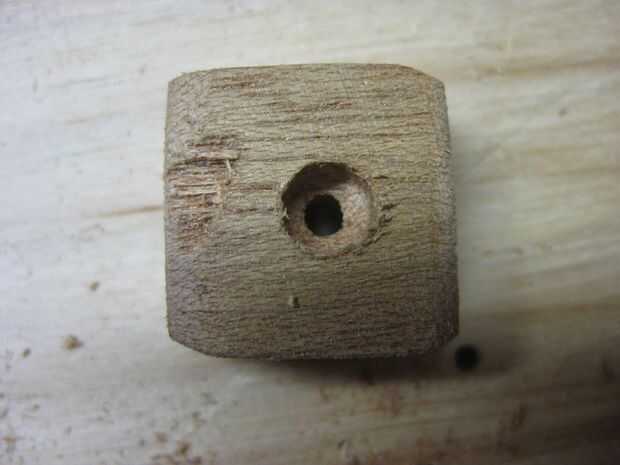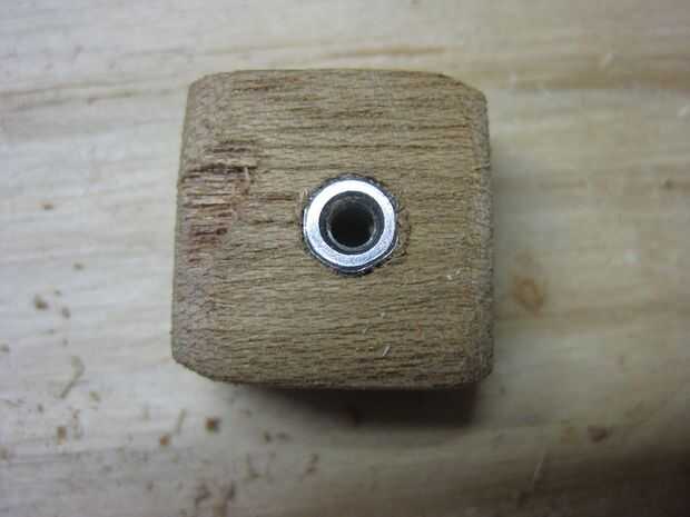 Taladré agujeros de perno de tamaño el borde-pedazos de madera y los amplió a medio camino en la madera. Aquí martilló una tuerca en la ampliación para crear un subproceso.