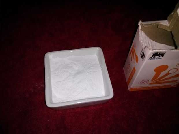 Vierta una pequeña cantidad de bicarbonato de sodio en el recipiente.