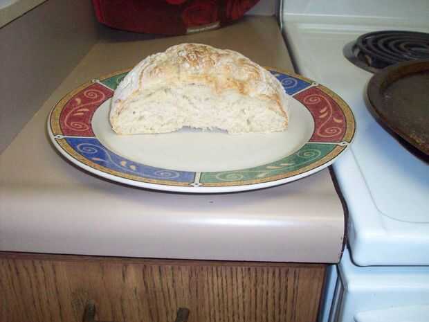 Una vez que el pan ha cocido al horno por 30 minutos sacar del horno y colóquelo sobre una rejilla para enfriar. El pan entonces estará listo para cortar y comer con la sopa!