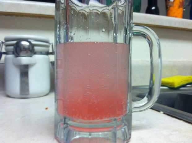 Salpicar la granadina sobre el hielo de Smirnoff en la taza.  Seguir añadiendo la granadina hasta que haya una capa roja en la parte inferior de la taza.  Tenga cuidado de no añadir demasiado o el cóctel resultará muy dulce.