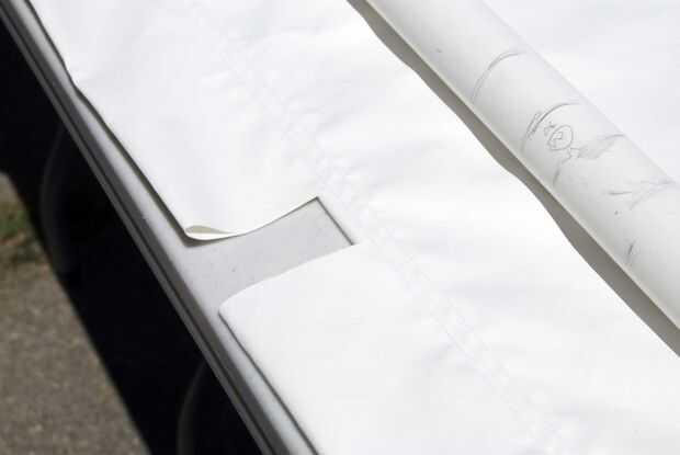 PIN y coser una puntada recta, haciendo un tubo a través del cual el bastidor del resbalón.