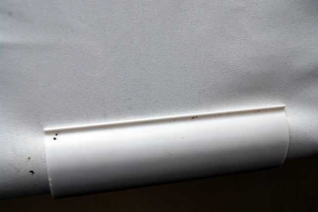 Deslice el marco ensamblado a través de la carcasa y fijar las correas de la cincha y anillos en D a través de las ranuras que cortan. La forma más sencilla que hemos encontrado para colgar la pantalla era colocar sobre una mesa y dos personas levantar los extremos al mismo tiempo.