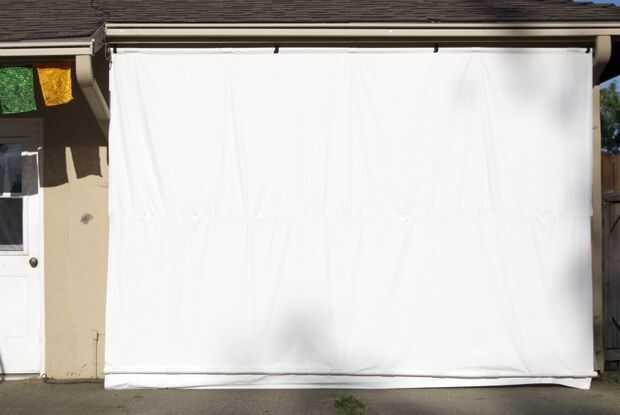 Cuando se cuelga el marco superior, fije el marco inferior a la pantalla con las abrazaderas de presión. También puede fijar la parte inferior de la pantalla con pesos o lazos en el caso de una repentina brisa.