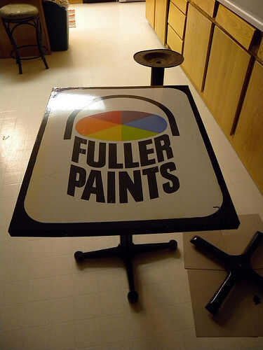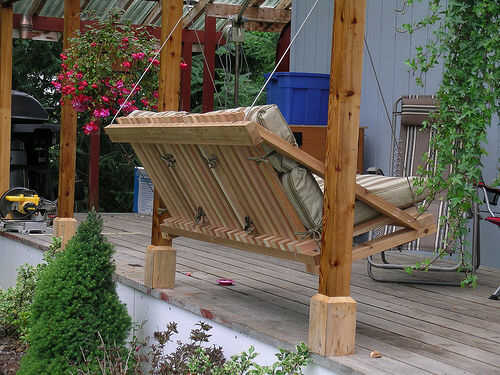 Muebles - mesas, Taburetes, un escritorio, mesa de una máquina de pinball, había reformado sillas de jardín plegables, una oscilación de porche.