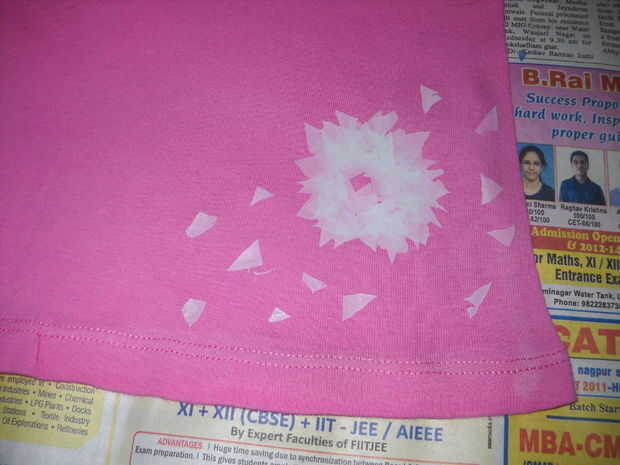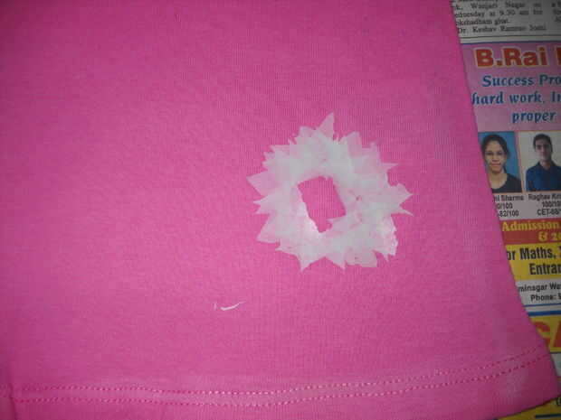 Si usted tiene alguna izquierda sobre piezas se puede espolvorear alrededor de la flor y fusible abajo demasiado. Trate de hacer figuras más pequeñas o tiras de plástico y fusible abajo demasiado.