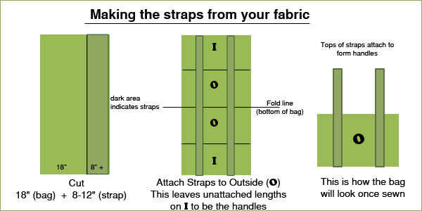 IMG 4 Esta es una ilustración rápida de cortar y colocar las correas de la misma tela que la bolsa principal. (Las áreas más oscuras muestran al tejido siendo utilizado para las correas)