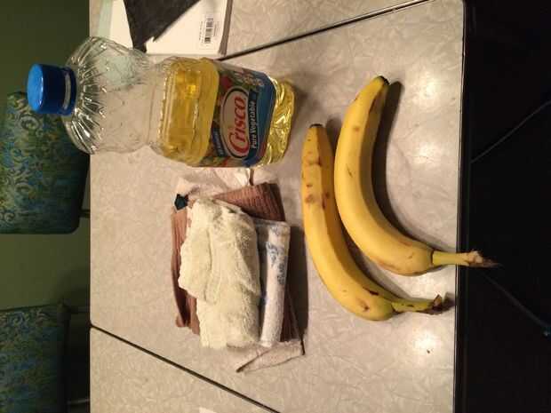 En primer lugar, se reúnen los materiales necesarios. Plátanos pueden encontrarse generalmente en una tienda de comestibles local. PROTIP: Comprar una extra para evitar el hambre. Junto con el plátano, mayoría de las tiendas llevan aceite y limpieza de trapos, también Asegúrese de obtener estos materiales. * Nota: Esta es también la mejor oportunidad para obtener vinagre y pasta de dientes para las partes opcionales de este proceso. Aunque no es necesario, puede ser útil con el fin de estar preparados para hacer los pasos opcionales.