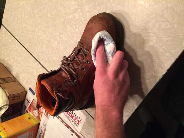 Tomar un trapo limpio y limpiar los zapatos para quitar cualquier polvo o suciedad que pueda haberse quedado adherido a ellos. Entonces, el trapo húmedo y limpiar los zapatos otra vez para conseguir cualquier cosa que usted puede haber perdido. Permitir que tus zapatos se sequen.