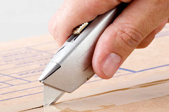 Utilizando el cuchillo, cortar a lo largo de todas las aristas que han sido elaboradas. Asegúrese de hacer los cortes el mismo ancho que la cartulina que está utilizando.