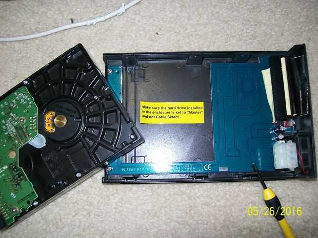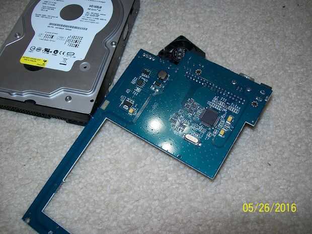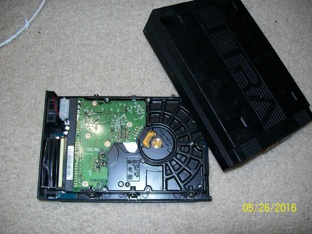 Este fue un antiguo recinto de la unidad de disco duro, en el momento tenía una agradable goma como acabado. Sin embargo, este plástico parece degradar muy rápidamente. El recinto tiene ahora una sensación muy pegajosa, con un aspecto claramente derretido. La primera foto lo muestra claramente. Decidí quitar el contenido y colocarlo en la construcción del proyecto.
