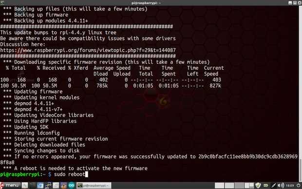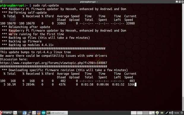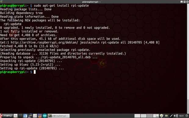 Ahora instalar la actualización de rpi (rpi-update está incluido por defecto en la imagen completa Raspian). Esto traerá el firmware del sistema hasta la fecha. No necesariamente tienes que realizar esta operación, pero es una herramienta útil para tener en el lugar.