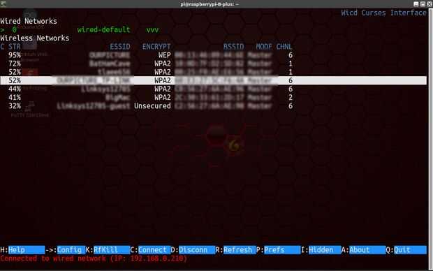 Ahora utilizar wicd-curses para seleccionar la red Wifi deseada y establecer inicio de sesión automático para reiniciar el futuro.