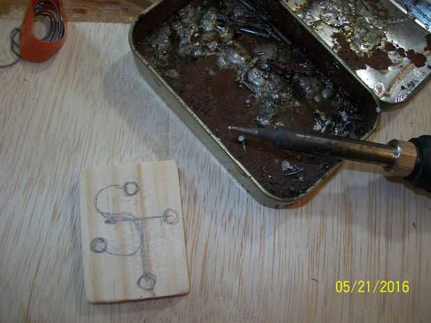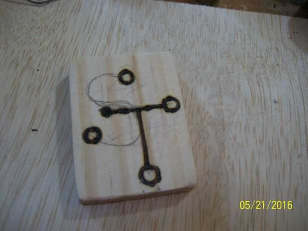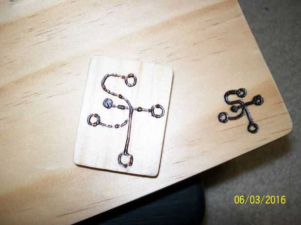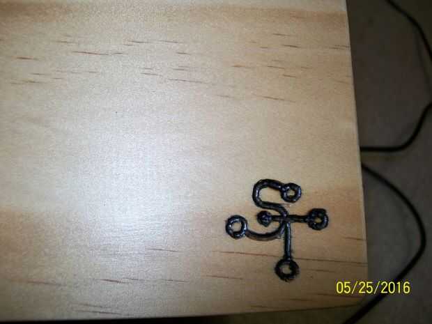 El toque final, un logotipo. Utilizando un soldador para grabar el logo en una pieza de madera parauna insignia para el gabinete. Luego conecte la placa al gabinete.