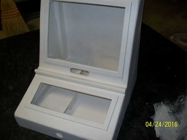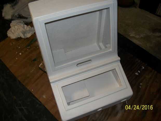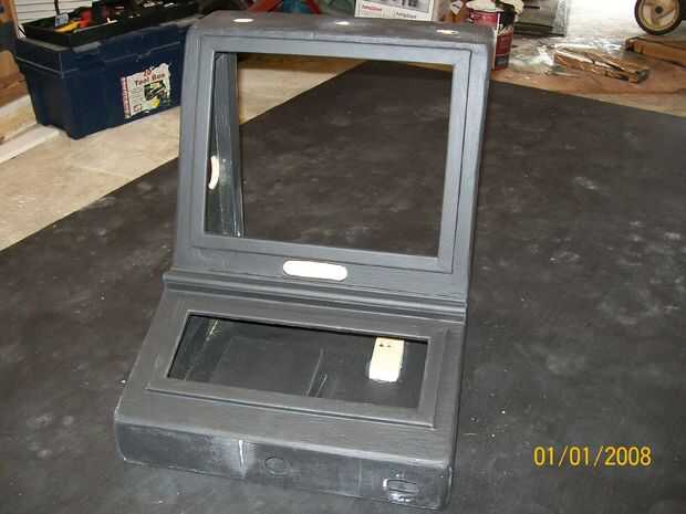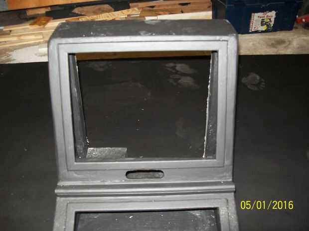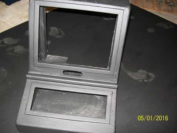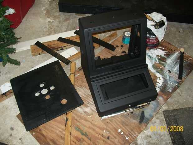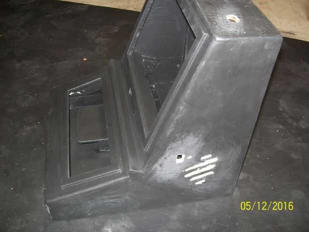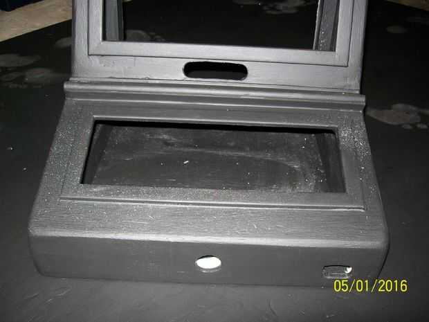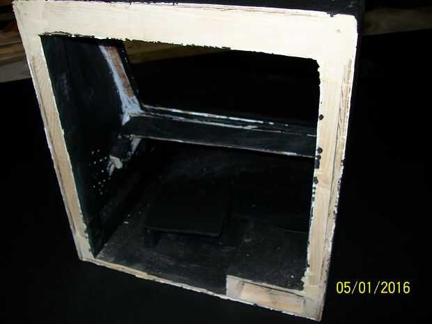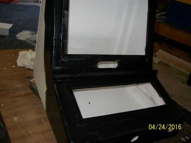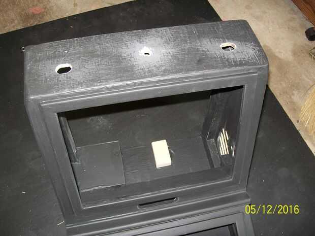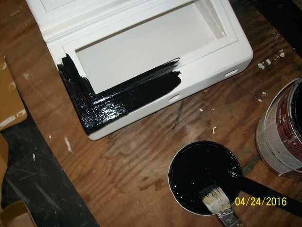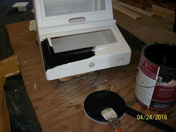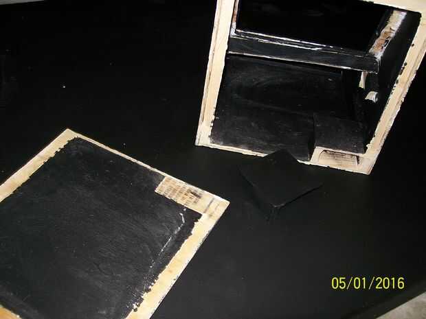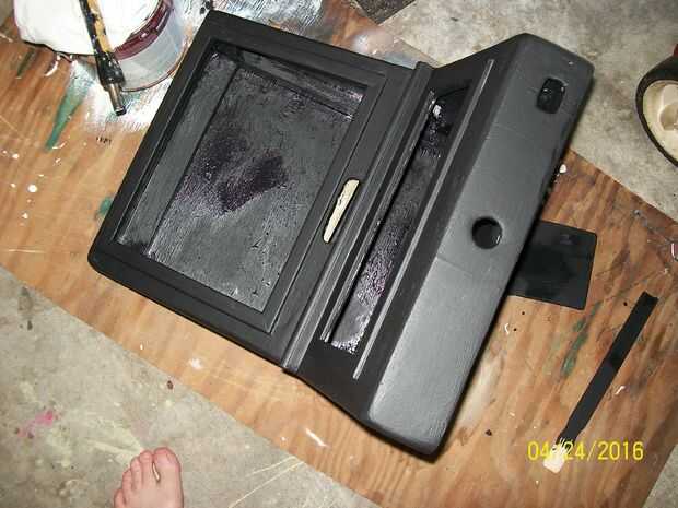 Dio el gabinete tres capas de pinza (sólo un puede tuve que mentir en el garaje). Seguido dando el gabinete cuatro capas de pintura negra mate exterior. Toda la pintura se aplicó a mano usando un cepillo.
