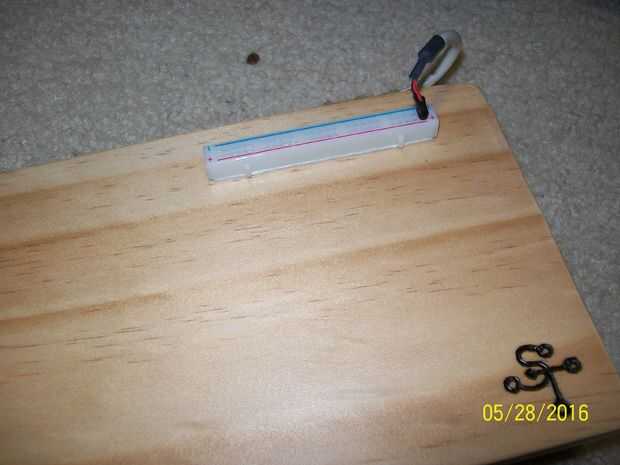 Pegar los dos pedazos más grandes del tablero con pegamento de madera de propósito general, fije y apartar para 24 horas. Ahora el canal hacia fuera las rutas de cable, estos voluntad permite cables de cinta y conduce a dirigir fuera del gabinete a la parte superior de la Junta, para su uso con tablas de pan solderless. Los cuadros indican cómo esto fue todo compilado. Las medidas son bastante arbitrarias, todo dependiendo del tamaño total del gabinete.