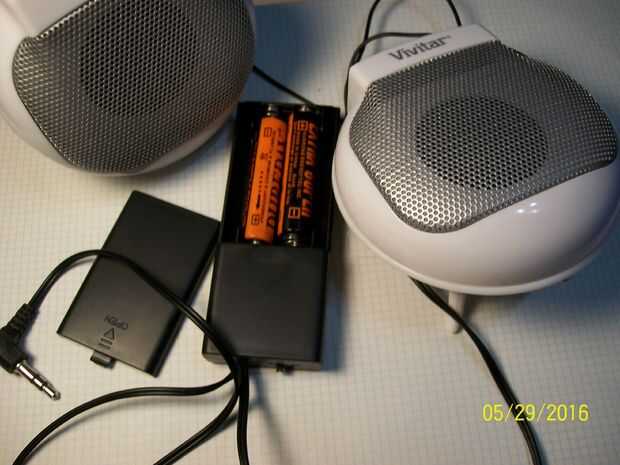 Como vez fue marchando decidí tomar el camino fácil y compre un juego de altavoces compactos de los Géneros dólarl. Vivitar producto Sistema de altavoces compacto #V03017 a un costo de $6.00. Luego pega caliente los altavoces en la parte superior del armario, debajo de los agujeros había ya para unos altavoces de portátil rescatados. Eventualmente puedo conectar la línea 3V3 a los altavoces, sin embargo no lo necesita el sonido a menudo así que por el momento, energía de la batería está bien. En su mayor parte estos permanecerán en la posición OFF.