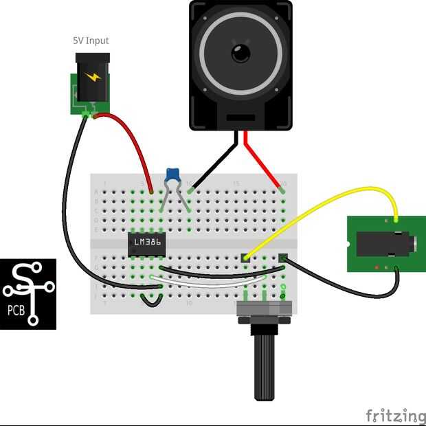 He probado el circuito más simple que pude sudo apt-get update sudo apt-get upgrade usando un LM386 poniendo hacia fuera en un protoboard. Tomando el esquema había elaborado en Fritzing y usando los componentes que tenía en mano, el circuito en un protoboard, había enchufado un cable de la computadora y jugaron un stream de radio. Esto fue más que suficiente para mi propósito. Jugué con un número de diferentes capacitores que tenía en la mano y luego se estableció sobre el uso de condensador electrolítico de 100uF 16V. Ahora hizo un poco demasiado confiado, cambiado el circuito y decidió fijar en tablero de 60 x 40 mm prototipo. Pobre diseño y planificación llevaron a las tostadas se LM386.