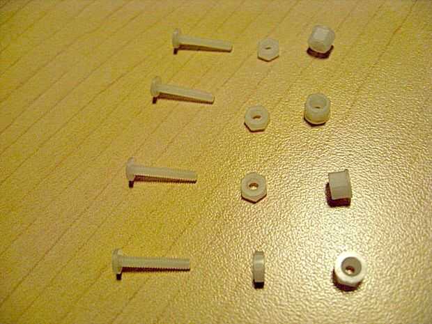 Utilicé tornillos de Nylon y recomiendo usar nylon sobre metal, porque, si no te los agujeros en el caso exactamente correcto, el nylon tiene un poco de elasticidad que permiten su montaje y evitar el agrietamiento en el caso.