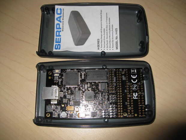 Nota: no he hecho esto pero en el Hammond no estoy seguro del espacio vertical necesitado. Si empuja la conexión USB a la placa frontal, el espaciado vertical es muy crítico en este caso. Parece como que necesite un poco más altura que el Serpac y por lo que se necesite para cada tornillo una arandela pequeña.
