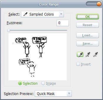 La tolerancia se establece en 0, haga clic una vez en la parte de "papel blanco" de la imagen y pulse OK.