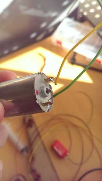 Preparar el motor y el interruptor por soldar los cables en cada uno de ellos, lo que es posible conectar la instalación a una batería de 9V.