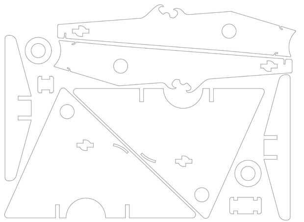 No dude en utilizar estos dibujos para la inspiración, o descargar el adjunto "hydraulic_crane.dxf"-archivo para continuar recto hasta el corte por láser.