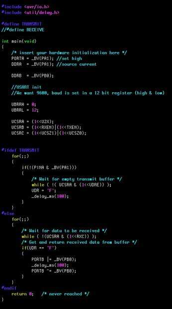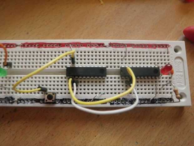 Para este ejemplo vamos a micros de ATtimy2313 programa dos para enviar caracteres en serie entre sí.