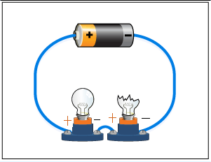 las imágenes siguientes muestran un simple circuito cuando una batería está conectada a dos lámparas, esto es un circuito en serie como las dos lámparas están conectadas con polaridad inversa. (positivo a negativo).