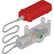 El motor de batería K'NEX atado es un motor eléctrico conectado a una batería de 3v separado. La batería tiene un interruptor de tres vías que permite el motor funcionar en cualquier dirección. Lleva dos baterías de AA. El motor está encerrado en una caja transparente, para que puedan ver cómo el motor impulsa las barras a través de una serie de ruedas dentadas.