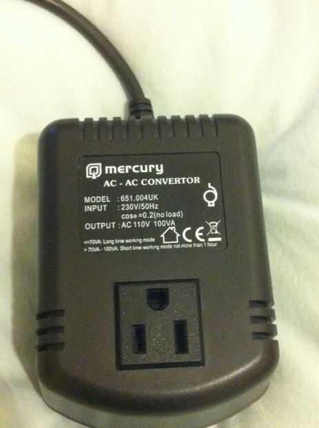 Como vivo en el Reino Unido nuestro voltaje de salida es 230VAC pero mi arandela de la pared era de Estados Unidos y requerido 110VAC. No era un gran problema a superar gracias a la invención del transformador.