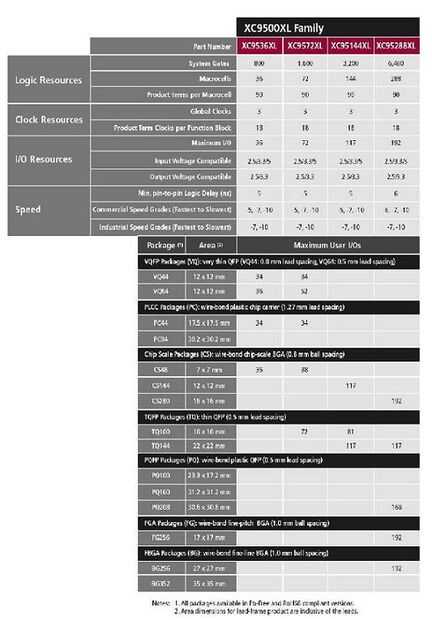 A continuación se muestra una guía de selección de dispositivos de Xilinx CoolRunner II y el PDF se adjunta si la imagen es demasiado borrosa para usted.
