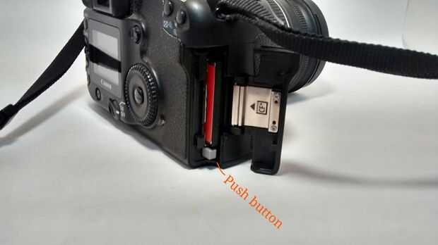 Ahora la tarjeta de la cámara es mucho más fácil. Para llevarlo a cabo, debe ser una traba pequeña en la cámara, deslice que se abren y luego presione el botón al lado de la tarjeta. Luego para ponerse de nuevo en, asegúrese de que está poniendo en la orientación correcta y pulse.