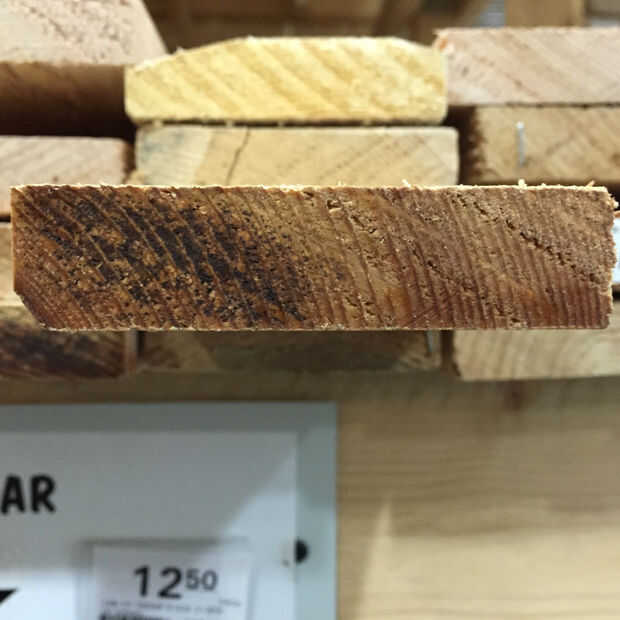 Este es el tipo más común se encuentra, caracterizado por los anillos que en cualquier lugar de perfectamente horizontal hasta 30 º respecto a la horizontal. Estos tableros parecen a lo que se imagina un tablero de madera típico parece y deben seguir siendo bastante planos. Madera aserrada plana puede taza un poco pero debe ser menor de edad.