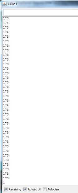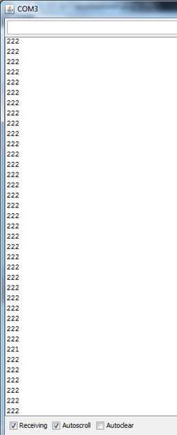 la ventana que aparece es una comunicación serie con el arduino. en este caso, nuestro programa lee el número que se está haciendo desde el sensor. Si usted utiliza una olla en lugar de la resistencia de 10 k, gírelo hasta que los números son los más grandes. la resistencia estará en 10k. ver los números, mientras que el sensor esté a temperatura ambiente. luego apriete el sensor con las manos o respiración en él. Si usas un portátil caliente, coloque el sensor cerca del escape de calor. experimento con el sensor y decidir sobre una constante de la temperatura.