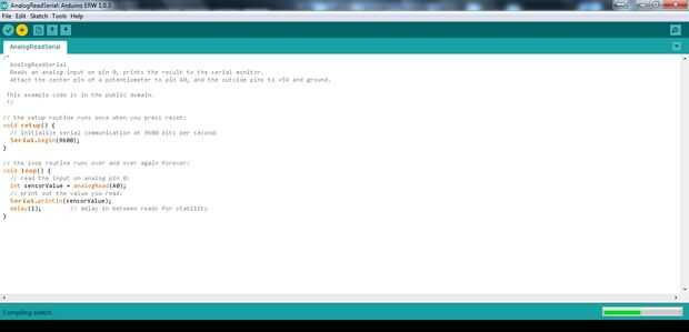 Abra el dibujo incluido en [archivo > ejemplos > 01 básico > AnalogReadSerial]. ver la imagen.