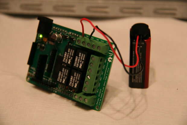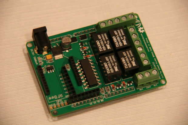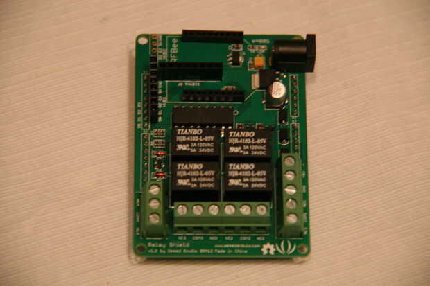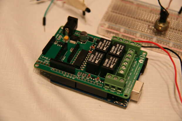 Hay múltiples soluciones, es un relé (estado mecánico o sólido). usé el escudo de relé SEEED studio seeeduino y arduino. es una tarjeta que se conecta en la parte superior el arduino, usa una externa de 9 voltios para alimentar cuatro relés, y usted puede lazo de energía a través de estos relés para controlar dispositivos de alta potencia con bajo consumo. Lamentablemente la tarjeta cubre todos los pines de arduino, sin suficientes contactos extras para correr un LCD, recibir datos de nuestro termómetro y saltar los relés. así que soldar dos jefes femeninos en el tablero para que yo pude viaje los relés sin él sentado en el arduino. sólo hay que conectar a tierra y un pin digital que será mi fan "en" o "off". Los 12 voltios de mi ATX fuente de alimentación irá a través de los terminales de tornillo de uno de los relés, común y normalmente abierto. Esto significa que sin tocar el relé, el circuito está abierto, por lo que el ventilador no está encendido. entonces si usted uno de los pasadores de la cabecera que estén soldada en su poder, se cierra el circuito entre común y hacer N.C. el ventilador se encienda. no necesita el escudo de relé para esto, mira para los relés de estado sólido, transistores, he visto algunas personas pegamento un servo a un interruptor.