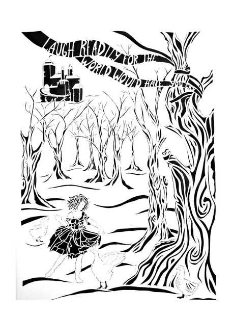 A veces no todo lo que estaba en la imagen original debe estar en su corte de papel. Parar cada 15 minutos o así para ver su trabajo y comprobar la composición. Una manera fácil de hacerlo es tomar una foto de él y luego examinar la foto. Por alguna razón esto me detiene falta el bosque por los árboles.