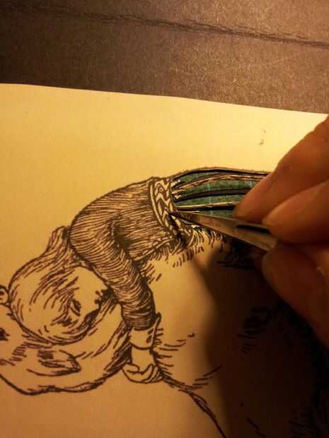 A veces (muy de la época) es más fácil mover el papel, no el bisturí, cortar una pieza. Esto es más cierto cuando elementos llegan a un punto. Acostumbrarse a girar su tarjeta alrededor y vea cuánto más fácil es hacer esos giros difíciles.