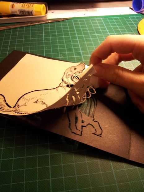 Ahora se hace la tarjeta. Cuidadosamente saque el diseño de papel, presionando sus dedos sobre cualquier bit de la tarjeta que quiera ir con el papel.