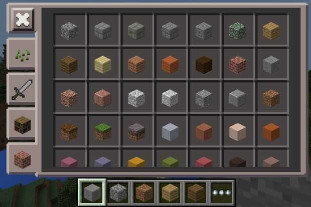 Creativo es donde tienes bloques infinitos, no puede morir, y no engendrar monstruos. Por último, se puede volar en creativo. Volar, doble clic en el botón de salto. Para detener el vuelo, dé un doble toque otra vez. En el inventario, las ventanas son las siguientes:
