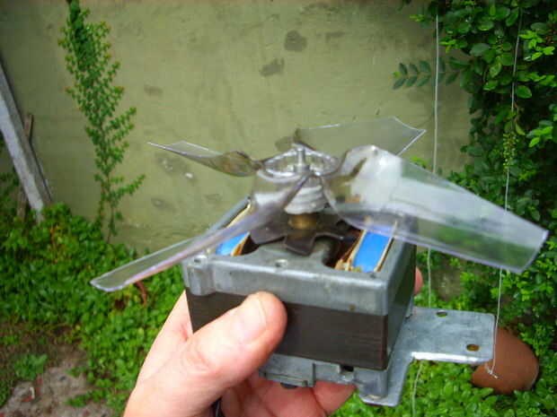(Esta hélice va a ser demasiado turbulenta e ineficaz. Afortunadamente eso se arregla fácil: con las tijeras hay cortar una línea recta vaya desde la mitad del extremo de cada hoja hasta el inicio del borde de fuga.)