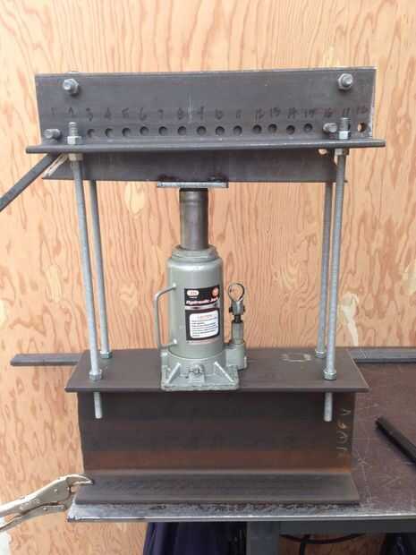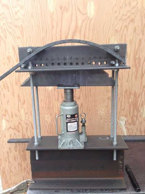 La tercera imagen es una curva completa. Tomo nota de que en todas operaciones de flexión, conducir el pistón del gato hacia un ajuste apretado entre la inclinación de la barra, la plantilla de flexión y los pernos de la longitud de cuerda. Esto hace que las curvas constantes, en lugar de decir, tratando de medir el recorrido del pistón de alguna manera.