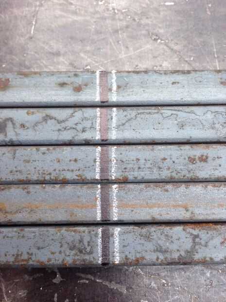Yo Marque el centro de mis curvas en la cara superior de la barra, ya ha demostrado para provocar flexión constante. Cuando se establece una barra en la máquina, se observa su posición a través de los agujeros abiertos en los ángulos. Debido a esto, yo Marque la ubicación de la curva con un marcador mágico y luego una piedra de jabón ambos lados de esa marca. Su fácil de ver.