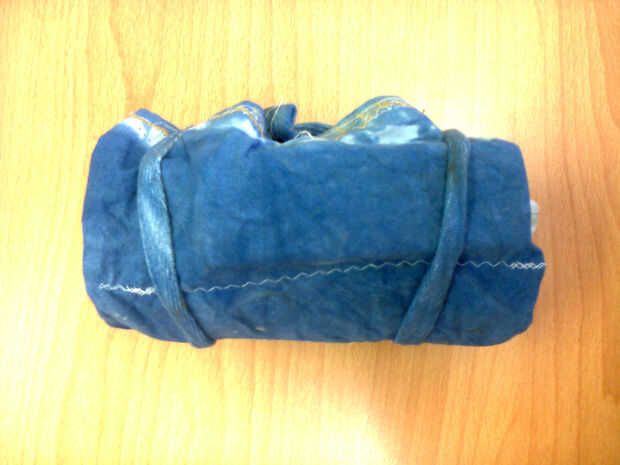 Coser el último bolsillo para asegurar los dos lazos que mantendrán Unidos el rollo.