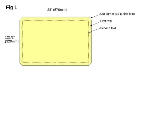 Necesita planchar la tela para formar un dobladillo de 1 cm (1/2 una pulgada) por doblar en dos veces. Corte las esquinas según el plan hasta el primer doblez lo hace un poco más fácil coser. Una vez que tengas una buena limpieza dobladillo todo y razonablemente rectangulares, es hora entonces de máquina de coser todo.