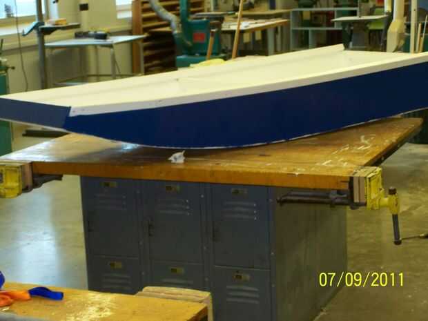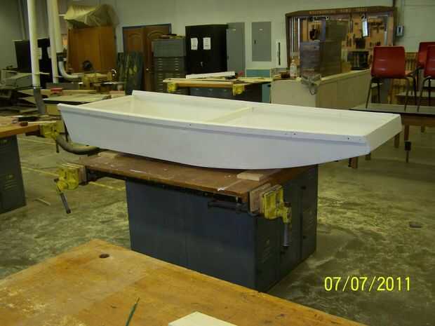 Recomendamos encarecidamente obtener una cartilla de buena calidad y poner en una o dos capas. Tenía pintura de látex que queda de mi último barco, eso es lo que usé. El primer realmente hace un gran trabajo de hacer que la pintura manche.