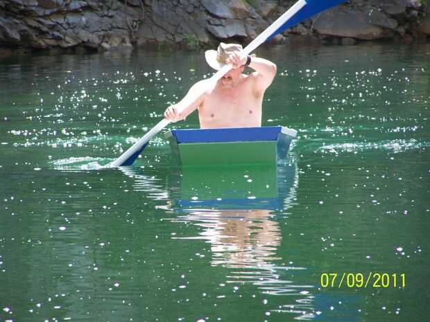 Aquí está en su ambiente natural. Esta es la primera versión. Uno de los hijos de vecino va a utilizar en el concurso. Ella quiere que el nombre de ella el dragón de mar. Mi barco de esposas va a llamarse Holzkiste, que es alemán para el cajón de madera.