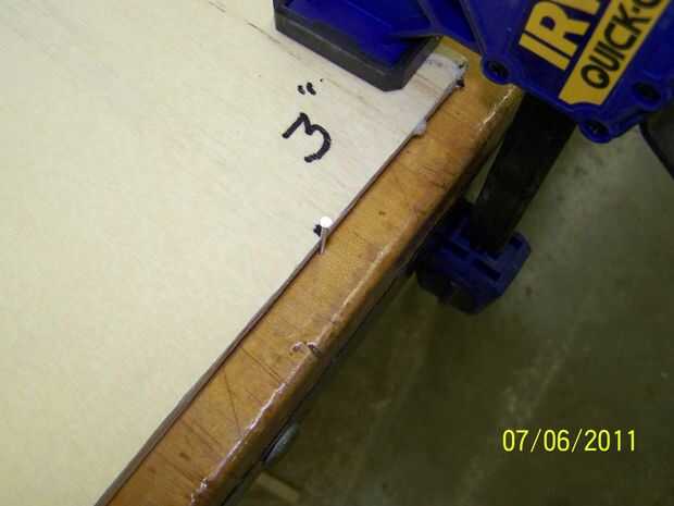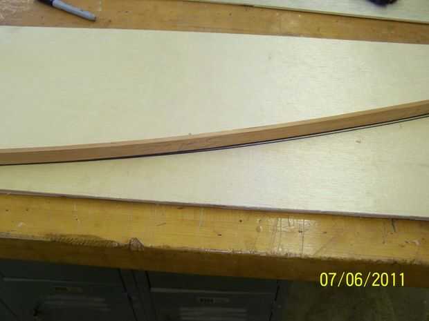 Puedes ver que puse un clavo en cada lugar. Les puso un stip delgada de madera contra ambos clavos y tiraron suavemente de ella hasta que tuve una curva justa por el ojo. En la tercera foto se puede ver que puse un clavo en el interior fo la curva para mantener en su lugar.