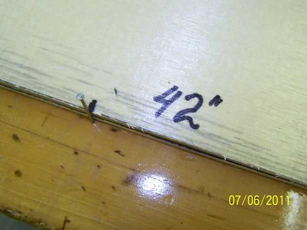 Me mide 3" abajo de la final que había cortado (dejando la fábrica borde att él inferior) y 42" a lo largo de la longitud de la parte inferior.